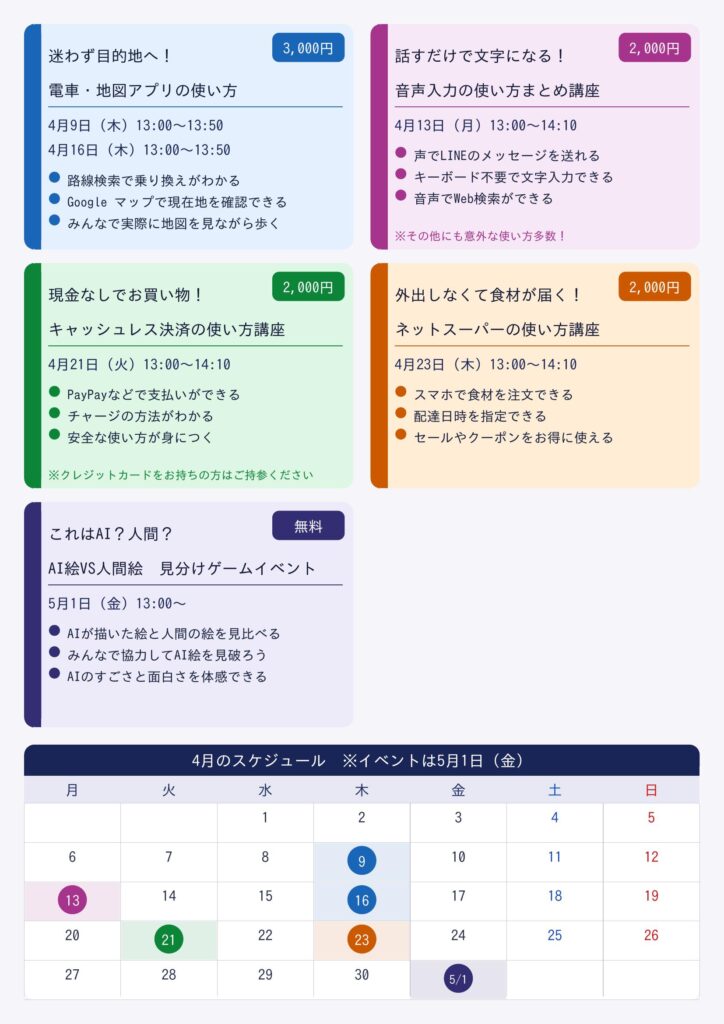 以前携帯ショップの無料のスマホ教室に何回か行っていたのですが、集団教室のためペースが速かったり遅かったりで中々思うように教えてもらえず、あまり身につかないまま独学でLINEなど出来ることだけやっていました。